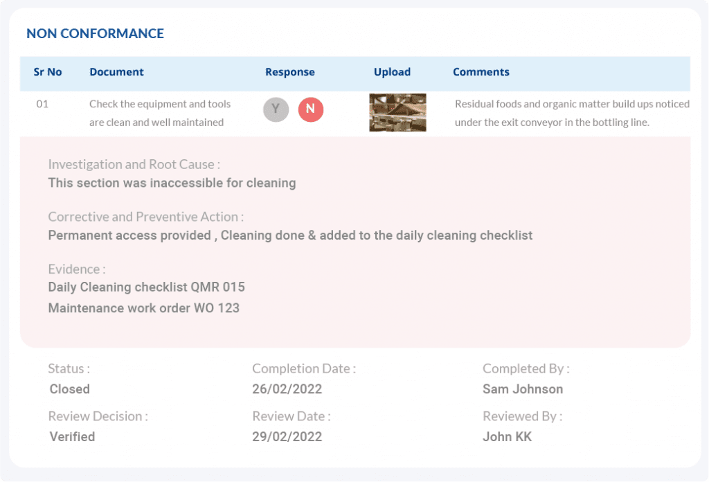 Whether internal or external audit needs, conduct audits efficiently, capture objective evidence and close findings to improve on quality and food safety of the products.