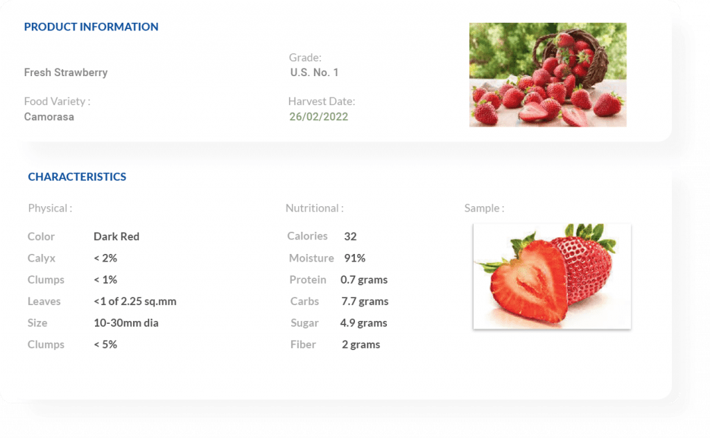 Create and manage product specification requirements by including information such as Product characteristics, Nutritional, Allergens, Packaging and Bill of Materials.