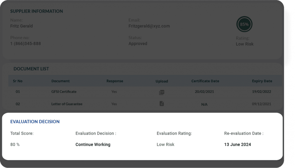 Our Smart Supplier software allows you to evaluate suppliers on their ability to provide materials based on the agreed specifications.